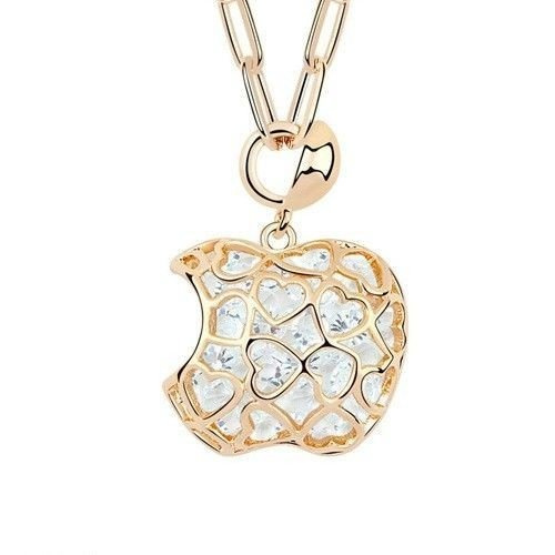 Przepiękny naszyjnik w kształcie Jabłka z oryginalnymi kryształami Swarovski Elements. Komplet platerowany jest złotem metodą elektroplated dzięki temu platerowanie jest trwałe i nadaje wysoki standard wykonania.