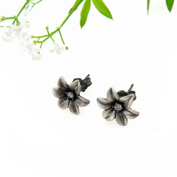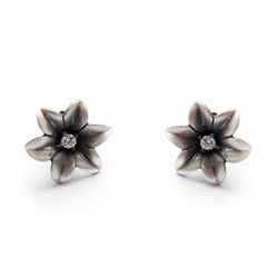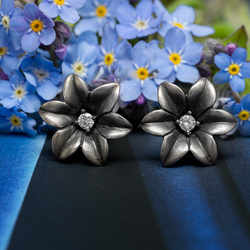Przepiękne kolczyki srebrne w kształcie niezapominajek. Wzór został ręcznie pokryty dodatkową warstwą oksydy, dzięki czemu cały projekt uzyskał oryginalny charakter stylu Vintage. Dodatkowo każda niezapominajka została ozdobiona cyrkonią. Do kompletu można dokupić zawieszkę.
