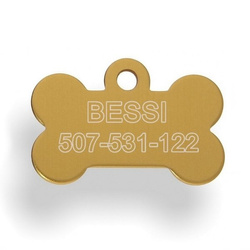 Zawieszka adresówka - identyfikator w kształcie złotej kostki, wykonana z aluminium, z mocowaniem na łańcuszku kulkowym. Brak niebezpiecznych dla pupila ostrych krawędzi, sprawia, że będzie dobrym wyborem nawet dla szczeniaka. Oferujemy możliwość wykonania bezpłatnego graweru (z imieniem, numerem telefonu lub adresem), dzięki któremu będzie możliwość ewentualnej identyfikacji zagubionego zwierzaka. Treść graweru prosimy podać w uwagach do zamówienia. Grawer umieścimy w dwóch rzędach, maksymalnie po 11 znaków w każdym.