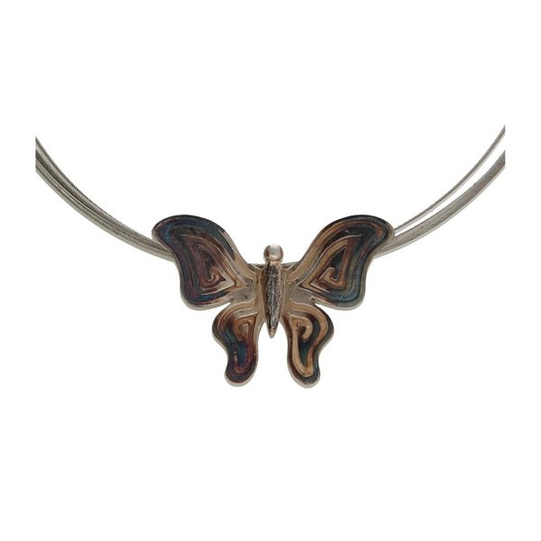 Srebrna zawieszka oksydowana w kształcie motyla. Wykonany ze srebra i wykończony oksydą, w pięknych brązowych odcieniach. Do kompletu można dokupić łańcuszek.