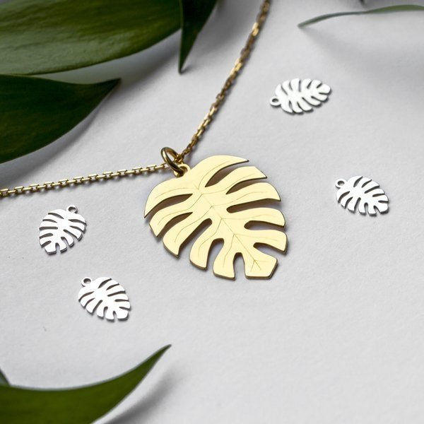 Piękny, klasyczny ale i designerski naszyjnik z liściem monstery - absolutne Must Have, jako uzupełnienie wielu stylizacji.