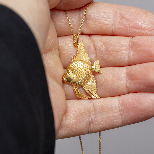 Naszyjnik ze złotą rybką wykonany w polskiej pracowni ze srebra p. 925 pozłoconego złotem 24K.