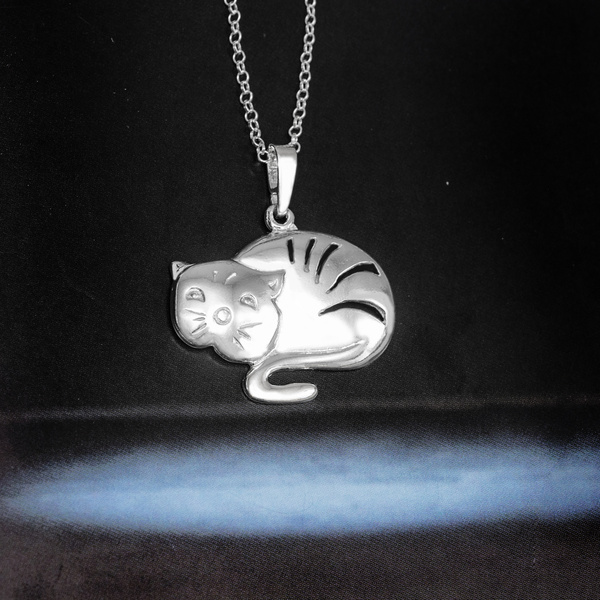 Niezwykle oryginalny naszyjnik z ażurowym kotkiem wykonany ze srebra próby 925.