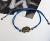 Przepiękna i bardzo wygodna w noszeniu bransoletka na sznurku w kolorze niebieskim z opalizującą masą perłową zakutą w srebro pr. 925.