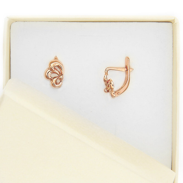 Prześliczne kolczyki w kształcie delikatnych kwiatuszków. Całość wykonana ze złota próby 585 w kolorze różowego złota.