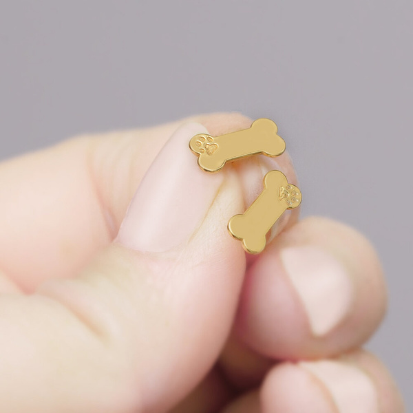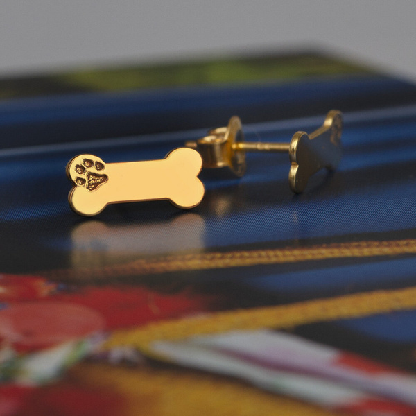 Piękne, klasyczne kolczyki srebrne, próby 925, pokryte złotem 24K w kształcie kości.