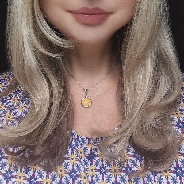 Przepiękny naszyjnik wykonany ze srebra p.925 z naturalnym bursztynkiem.