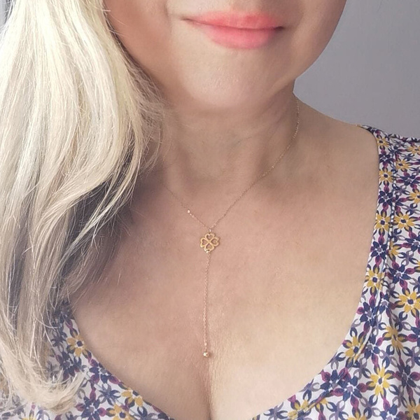 Złota celebrytka z regulacją długości ze śliczną koniczynką.