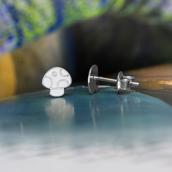 Piękne, klasyczne kolczyki srebrne, próby 925 w kształcie muchomorka.