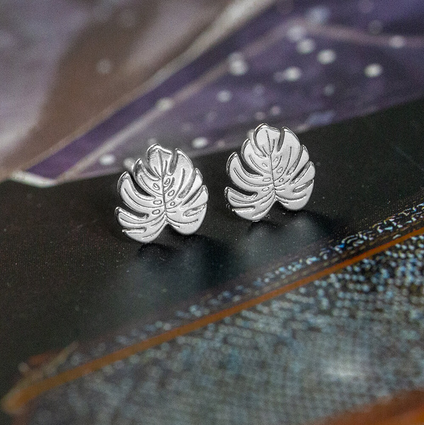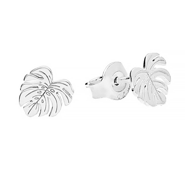 Piękne, klasyczne kolczyki srebrne, próby 925 w kształcie listka monstery.