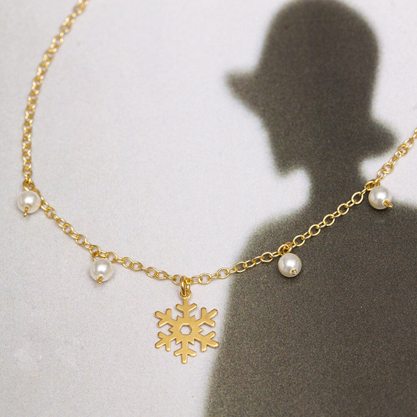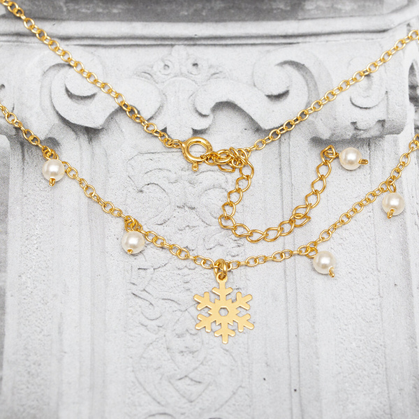 Przepiękny naszyjnik z oryginalnymi perełkami Swarovskiego i zawieszką w kształcie płatka śniegu.