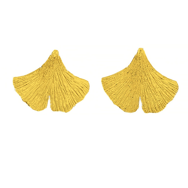 Satynowe kolczyki z listkami miłorzębu, zostały wykonane ze srebra p. 925 pokrytego złotem 24K.