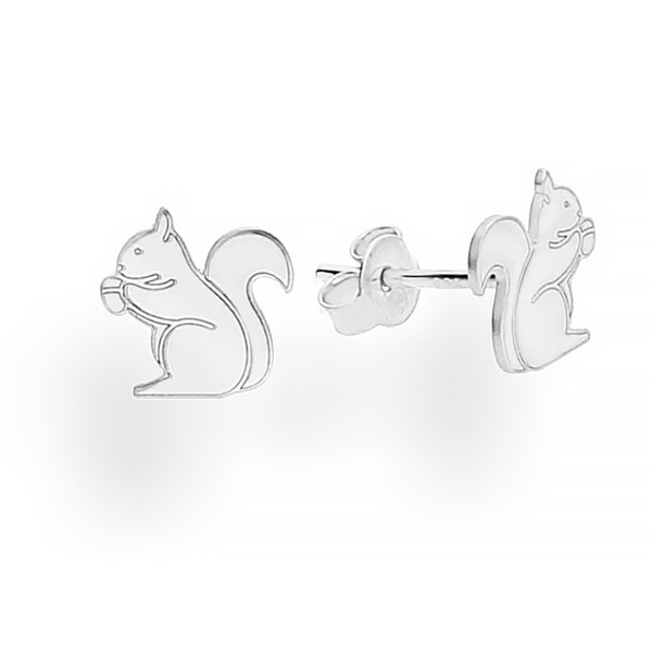 Piękne, klasyczne kolczyki srebrne, próby 925 w kształcie wiewiórek.