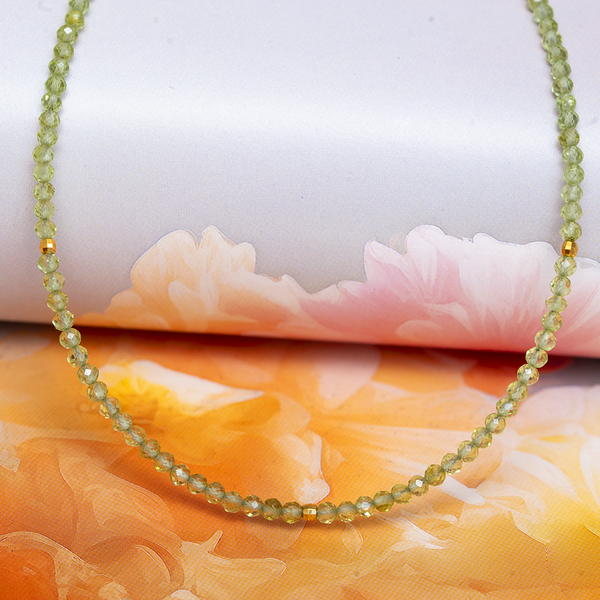 Kochani, przygotowałam dla Was przepiękny i pełen uroku naszyjnik ze zjawiskowym, naturalnym, fasetowanym oliwinem przedzielonym trzema złoconymi kulkami.