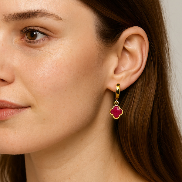 Kolczyki z naturalnymi rubinami, wykonane ze srebra próby 925 i pozłocona złotem 24K.