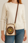 Śliczna, mała torebka z wytłoczonym wzorem przedstawiającym jelenia.