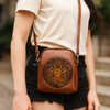 Śliczna, mała torebka z wytłoczonym wzorem przedstawiającym jelenia.