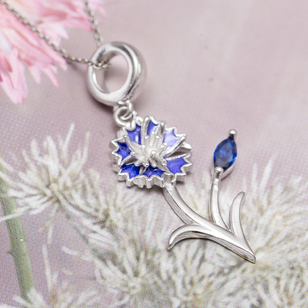 Kwiatek został pokryty emalią, a na pączku kwiatka została umieszczona cyrkonia.