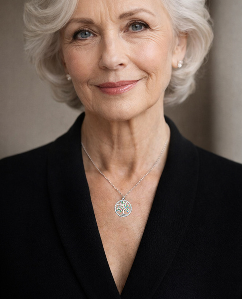 Naszyjnik jest wykonany ze srebra p. 925 i pokryty rodem. Rod zabezpiecza srebro przed ciemnieniem.