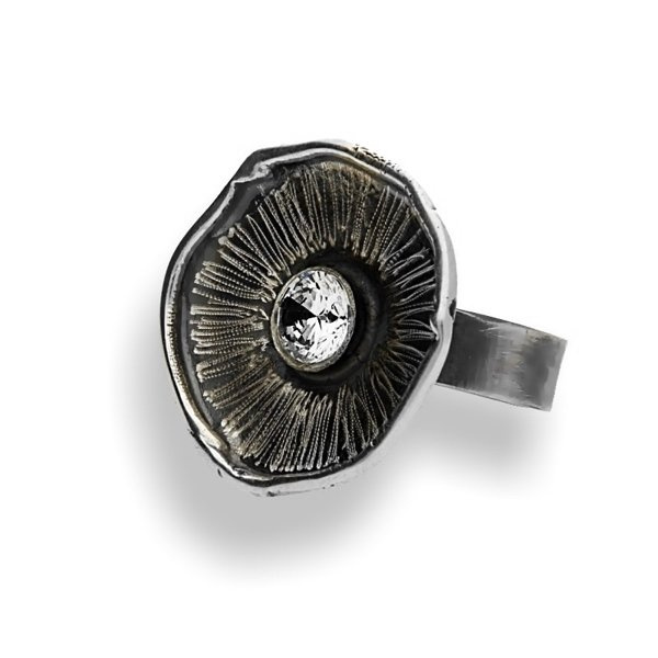 Pierścionek został ręcznie wykonany ze srebra p. 925 i przyozdobiony cyrkonią.